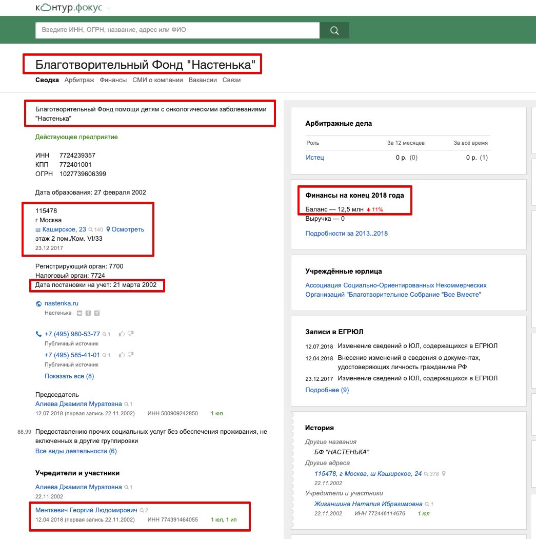 Заметьте, адрес фонда один в один совпадает с адресом онкоцентра, но среди соучредителей фонда только физлица. Ну и сам Менткевич.