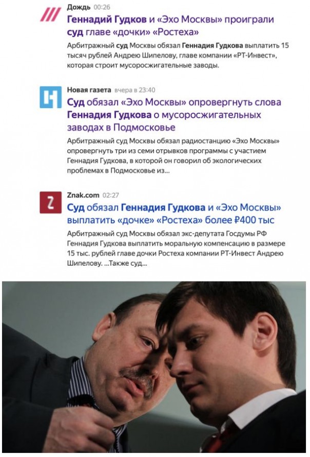 У либеральных СМИ траур второй день. Суд обязал "Эхо Москвы" удалить вранье видных борцов за экологию и одновременно свалочных олигархов Гудковых о подмосковных заводах W2E, а их самих выплатить более 400.000 рублей издержек.