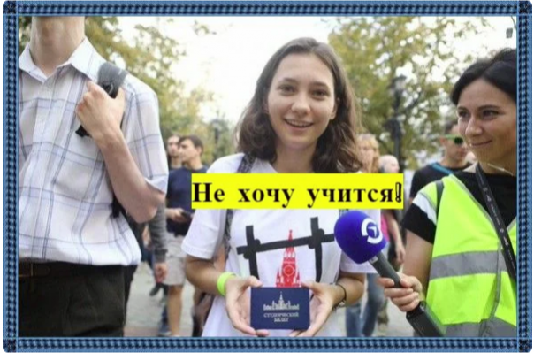 Что это вообще происходит, почему вместо учебы, МГУ превращается в базарную площадь? Она же подает пример другим студентам, зачем учится, если как Оля можно бегать с плакатами, а тебе за это всякие бонусы. У нас и так уровень образование падает с каждым годом, теперь вообще превратится непонятно во что?