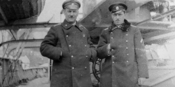 Командующий Сибирской флотилией контр-адмирал Г. К. Старк и начальник Штаба флотилии капитан 1-го ранга Н. Ю. Фомин на КЛ «Манджуръ». Владивосток, зима 1921 года
