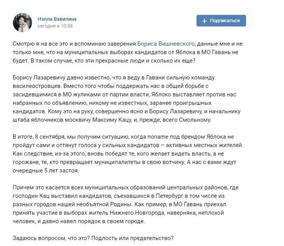 Недавно Вишневский заключил с председателем Псковского «Яблока» Львом Шлосбергом договор о продвижении Левы на место Явлинского. Отчего-то эти два неудачника решили, что так «яблочникам» будет проще войти в состав ГД на предстоящих в 2021 году выборах.