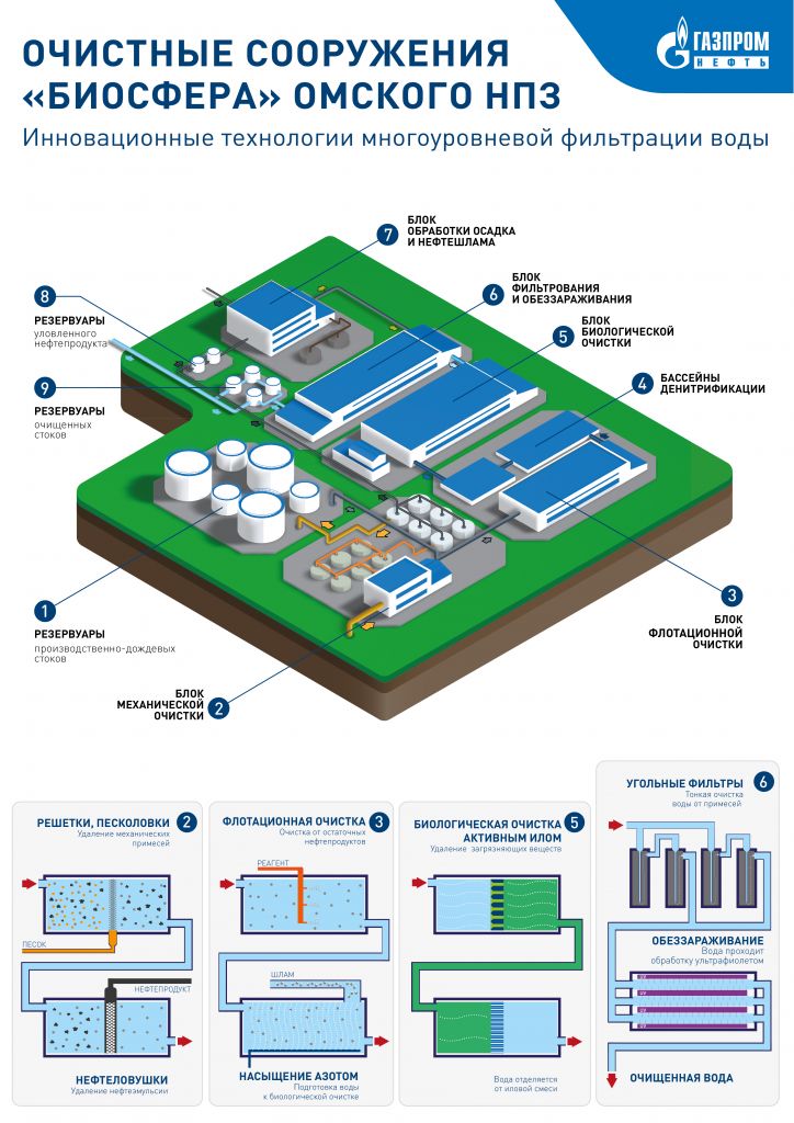 Отметим, что строительство «Биосферы» идет в рамках грандиозной программы развития Омского нефтезавода и является важной частью мероприятий федерального проекта «Чистый воздух». Новая система водоочистки — один из крупнейших природоохранных проектов в Омском регионе, инвестиции в который составляют 19 млрд рублей. Строительство комплекса планируется завершить к 2021 году.