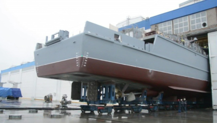 Уникальный противоминный корабль "Яков Баляев" вывели из цеха на судостроительном заводе в Петербурге. У него самый большой в мире корпус из монолитного стеклопластика.