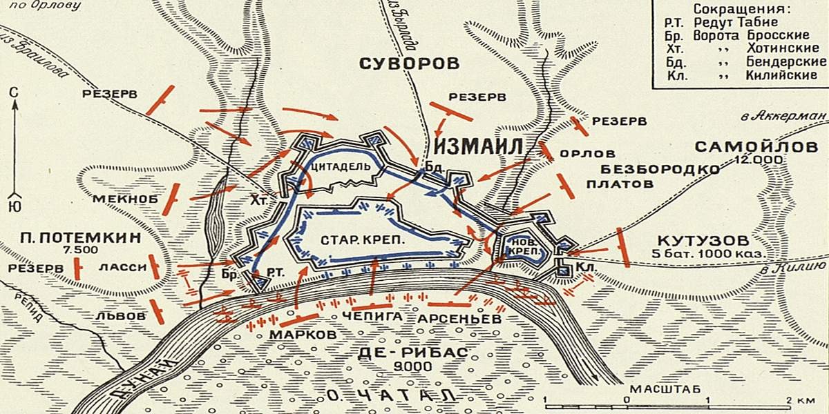 Для нас штурм Измаила почему-то представляется сухопутной операцией — многие читали про кровавую атаку Килийских ворот Кутузовым, Хотинских ворот князем Львовым, и т. д. Практически все помнят момент, когда Кутузов не мог пробиться в город и готов был отступиться от атаки, когда к нему прибыл гонец от Суворова и сообщил: «Его сиятельство граф Суворов-Рымникской назначает ваше превосходительство комендантом Измаила. Уже послан гонец к её величеству о взятии крепости!».
