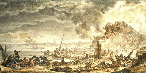На а далее — штурм: «За два часа перед рассветом по данному сигналу ракетою войска, расположенные на лодках и гребных судах, числом 8000, подвинутся в одно время к противному берегу с обоих флангов, то есть с левого фланга крепости запорожские лодки, дубы и паромы, подняв на себя 1500 казаков, 3500 регулярнаго войска.
