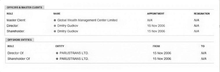 К подобной нелегальной деятельности Дмитрий Гудков прибегал не раз. Достаточно вспомнить, как он отмывал доходы, полученные не слишком чистым способом через офшор, зарегистрированный на Британских Виргинских островах. Не пойму, чего это наши оппы, что ни морда, то все в калашный ряд норовит – то бишь лезут почем зря в британские офшоры. Вот и Дима обзавелся конторой под названием Parustrans Ltd. еще в 2016 году. Однако ни в одной своей избирательной кампании он ее не упомянул. Логично, в принципе: ведь это он орал больше всех после «панамского слива», что СМИ недостаточно по косточкам разобрали его фигурантов. К нему к первому бы журналисты присмотрелись бы.
