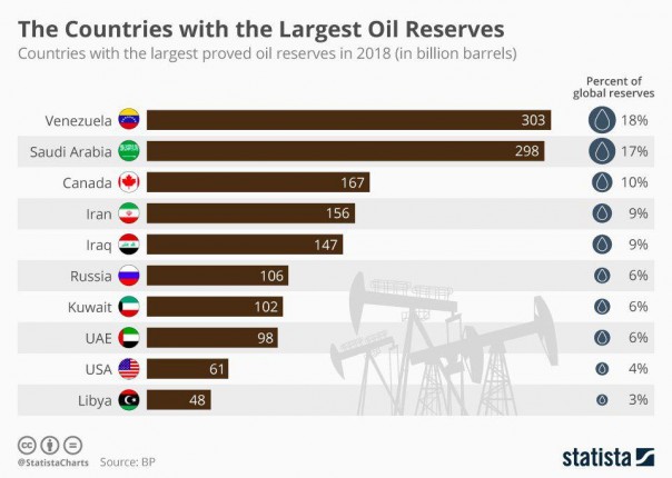 Запасов нефти больше всего оказывается не у России, а у бедной Венесуэлы. 95% доходов Каракасу приносит экспорт сырой нефти.