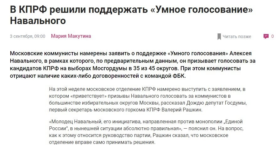 Как видно, «коммунист» Рашкин давно уже отказался от заветов «великого Ленина», а партия КПРФ стала частью либеральной тусовочки Навального, забыв учения Маркса и Энгельса. Таким образом в России единственными коммунистами остались члены партии «Коммунисты России».