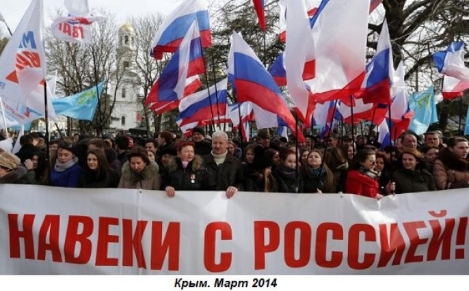 Крымская Весна - наиважнейший ориентир, безусловный водораздел. Искренне произносящие "Крым наш!" - действительно наши, свои, родные. Меньшинства, твердящие об "аннексии" (яблочники, парнасовцы, либертарианцы, троцкисты и др.) - предатели, чужаки. Кухонные аналитики, сквозь зубы цедящие про "не всё так однозначно" - тоже. И нельзя забывать, конечно, о пятой/шестой колонне во властных структурах. Львиная доля высших чиновников, их политологической и журналистской обслуги выступала категорически против возвращения полуострова. Это уже потом, по завершении блестящей операции силовиков, они научились говорить "прочувствованные" речи о Крыме и крымчанах.
