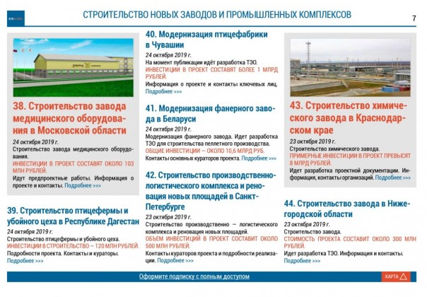 Мне по подписке на один ресурс, который занимается агрегацией проектов ежеквартально приходит карта строящихся предприятий. Вот она: