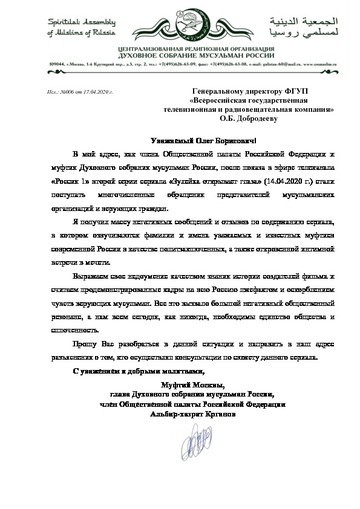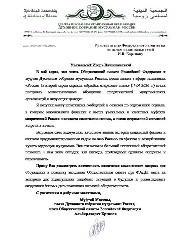 Обращения муфтия духовного собрания мусульман России Альбира Крганова к руководителю федерального агентства по делам национальностей Игорю Баринову и генеральному директору ВГТРК «Россия» Олегу Добродееву.
