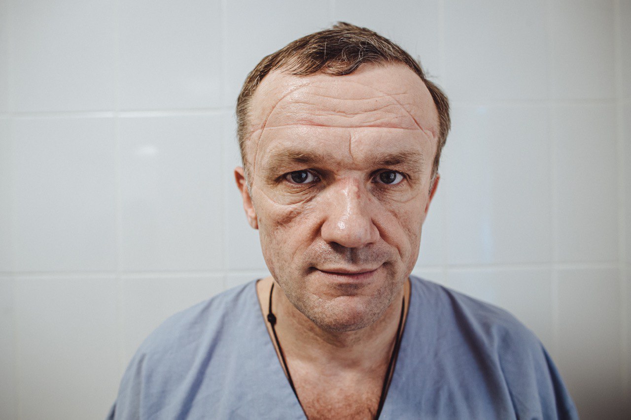 На фото Валерий Вечорко, главный врач 15-й Московской больницы. Он только что вышел из красной зоны, на лице следы от защитных очков. Такие сейчас у всех сотрудников больницы, их несколько тысяч. За 6 дней Валерий распределил полторы тысячи больных разных отделений по другим больницам города и принял полторы тысячи человек с диагнозом COVID. Источник