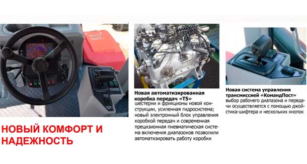 На тракторах устанавливается автоматическая коробка передач «Т5» производства ПТЗ. Та же КПП используется и на более мощных «Кировец К7».