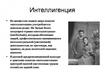 Об интеллигенции России хочется говорить или хорошо, что непросто, или никак. Собственно, что такое «интеллигент»? Толковый словарь говорит, что это «общественный слой работников умственного труда, образованных людей». Меня не устраивает такое определение, но, собственно, если определение верно, то я полагаю, что результаты деятельности интеллигенции, как общественной силы, должны бы быть несколько иными, особенно, при всем разнообразии оной.
