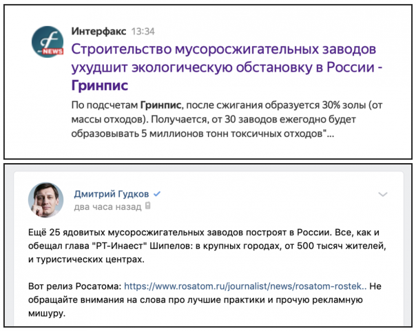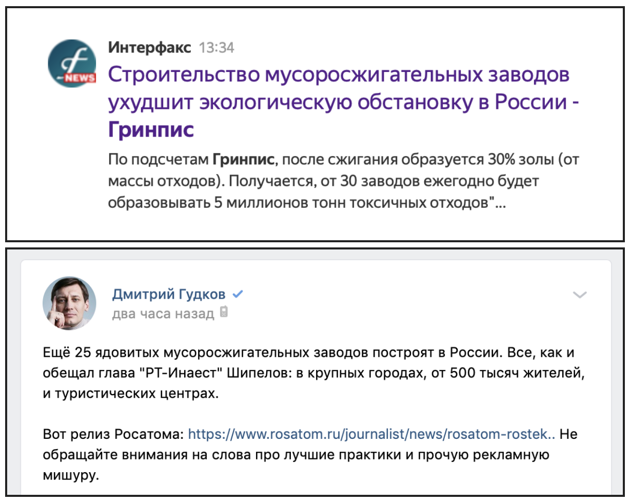 Потому что заводы по переработке отходов в России - это плохо и для Гудкова и для Гринпис. Вот закрыли свалку Воловичи в Подмосковье и теперь у Гены и Димы Гудковых стало меньше денег. Отказались от б/у заводов из Германии, которые предлагал Димин папа, и семья Гудковых не заработала на них. Опять же, если горящих и воняющих свалок нет, то вокруг чего устраивать массовые протесты? Так что подобные масштабные проекты в России - это очень, очень плохо.