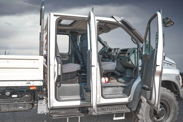 У «двухрядника» задний ряд сидений можно легко трансформировать в спальное место. Дополнительный ящик под сиденьями позволяет разместить личные вещи водителя или членов рабочей бригады.