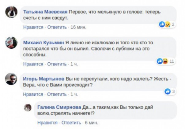 В либеральном сегменте соцсетей бухую особь предсказуемо объявили жертвой режима. Всё подстроила "кровавая гэбня". Оппозиционный Twitter-аккаунт ЯR: "Ефремов был и останется для меня Человеком с большой буквы. Да, сел за руль пьяный. Да, устроил ДТП. Но если бы он сам погиб в этой аварии, то в России стало бы одним порядочным человеком меньше. Все, кто его ******** сейчас — ***** и ********. Спасибо, что живой, короче". Маститые либералы Максим Кац и Роман Доброхотов обвинили в случившемся власти, которые не поставили в том месте отбойник. Лучи поддержки послал экс-актёр, сексуальный извращенец и русофоб Алексей Панин. Сочувствует Ефремову и главред RT Маргарита Симоньян: "Очень не хочется, чтобы грандиозный русский актёр сидел в тюрьме". Грандиозный русский актёр? Элитка любит Мишу.