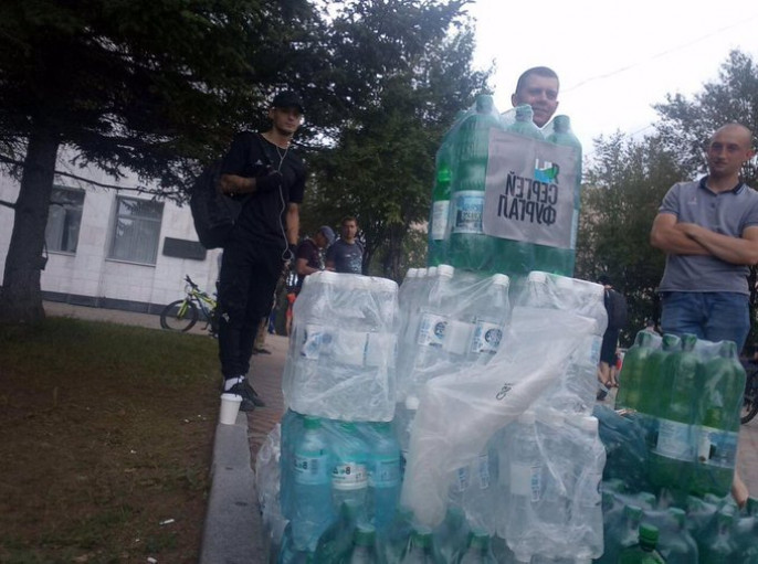Наблюдается неплохая организация - митингующие снабжены водой, семками. Дают по тысчонке (фигня по местным ценам, жмотятся; единого тарифа на протестные мероприятия не существует, да и от географии всё зависит - например, 10 лет назад "защитникам Химкинского леса" в Подмосковье от щедрот кураторов г-жи Чириковой платили 1,5 тысяч рублей за сутки).