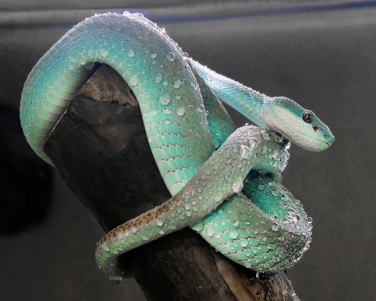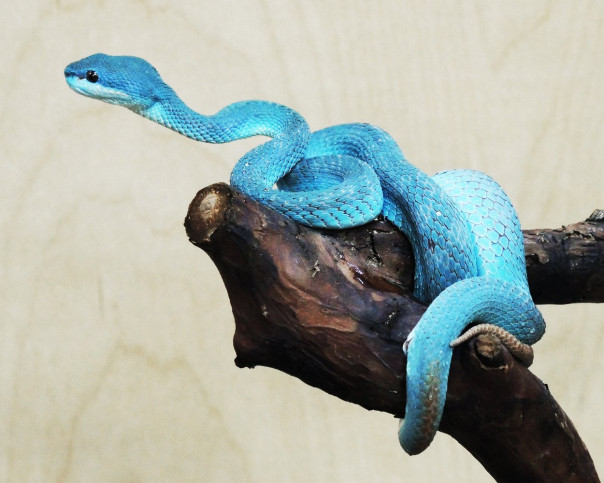 Куфии – живородящие змеи, восемь малышей небесного цвета родились 25 июля. Пол детенышей определят после первой линьки, когда они немного подрастут.