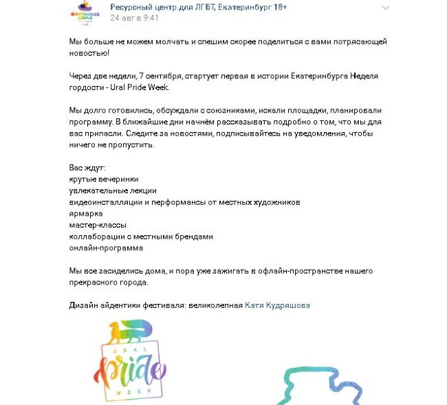 Общее количество акций по обнулению поправок перевалило за сотню. Только за последние дни прошла уже третья лекция государственной Высшей школы экономики в ВВЦ о ЛГБТ, где в восхищенных тонах рассказывали про ньюансы педерастии, анального секса и их идеологии, а соцсеть «ВКонтакте» начала блокировать страницы за «гомофобию, сексизм и предрассудки». Теперь они уже объявили о проведении целой недели своей пропаганды в столице Урала.