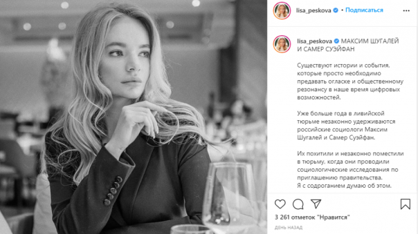 Дочь пресс-секретаря президента РФ Пескова содрогается, когда думает про судьбу Шугалея