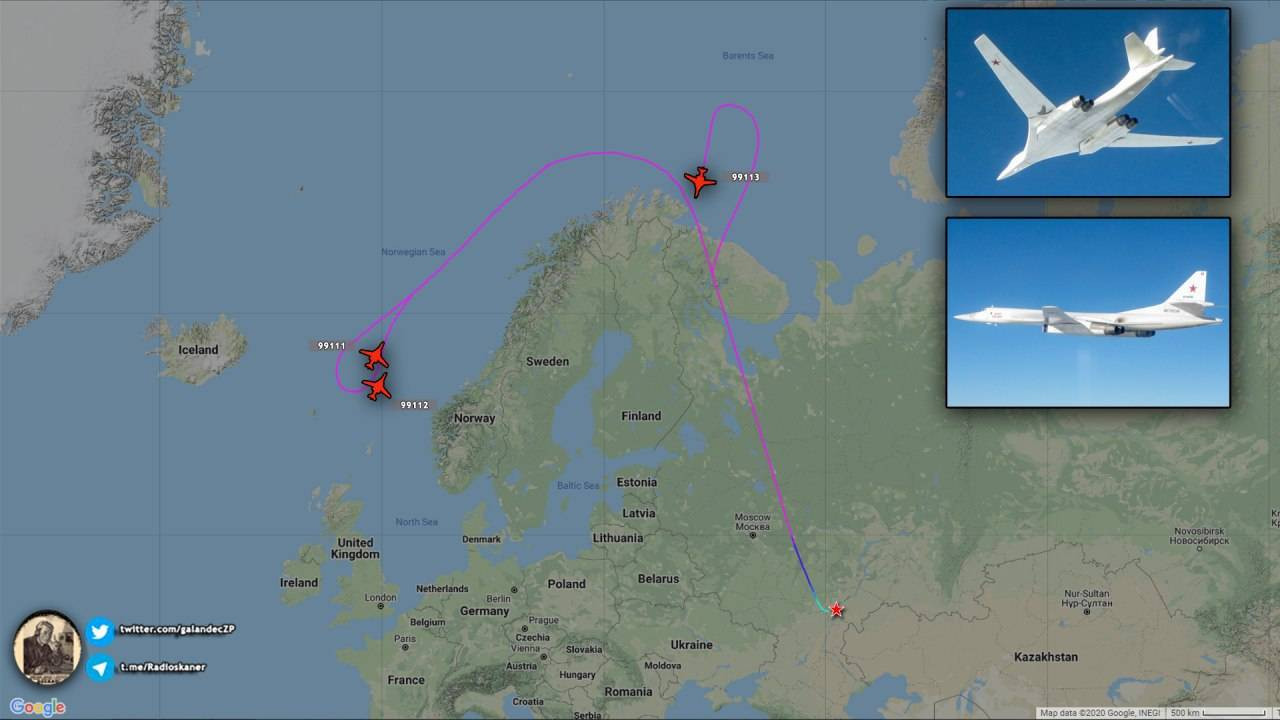 Показательно, что в то время, когда B-52H находились над Черным морем, два стратегических ракетоносца Ту-160 ВКС России (позывные 99111 и 99112, а также борт 99113, который работал ретранслятором связи), пролетев над водами акваторий Баренцева и Норвежского морей, вошли в воздушное пространство северной Атлантики. Продолжительность полета составила около 10 часов, сообщает Минобороны РФ. На отдельных этапах маршрута их сопровождали МиГ-31 морской авиации ВМФ России. Эту информацию подтверждает телеграм-канал «Записки Охотника», который занимается отслеживанием полетов российской боевой и транспортной авиации.