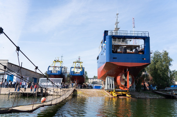 16 сентября в г. Светлый (Калининградская область) состоялся спуск на воду корпуса нового рыбопромыслового судна «Всеслав» проекта 174610.