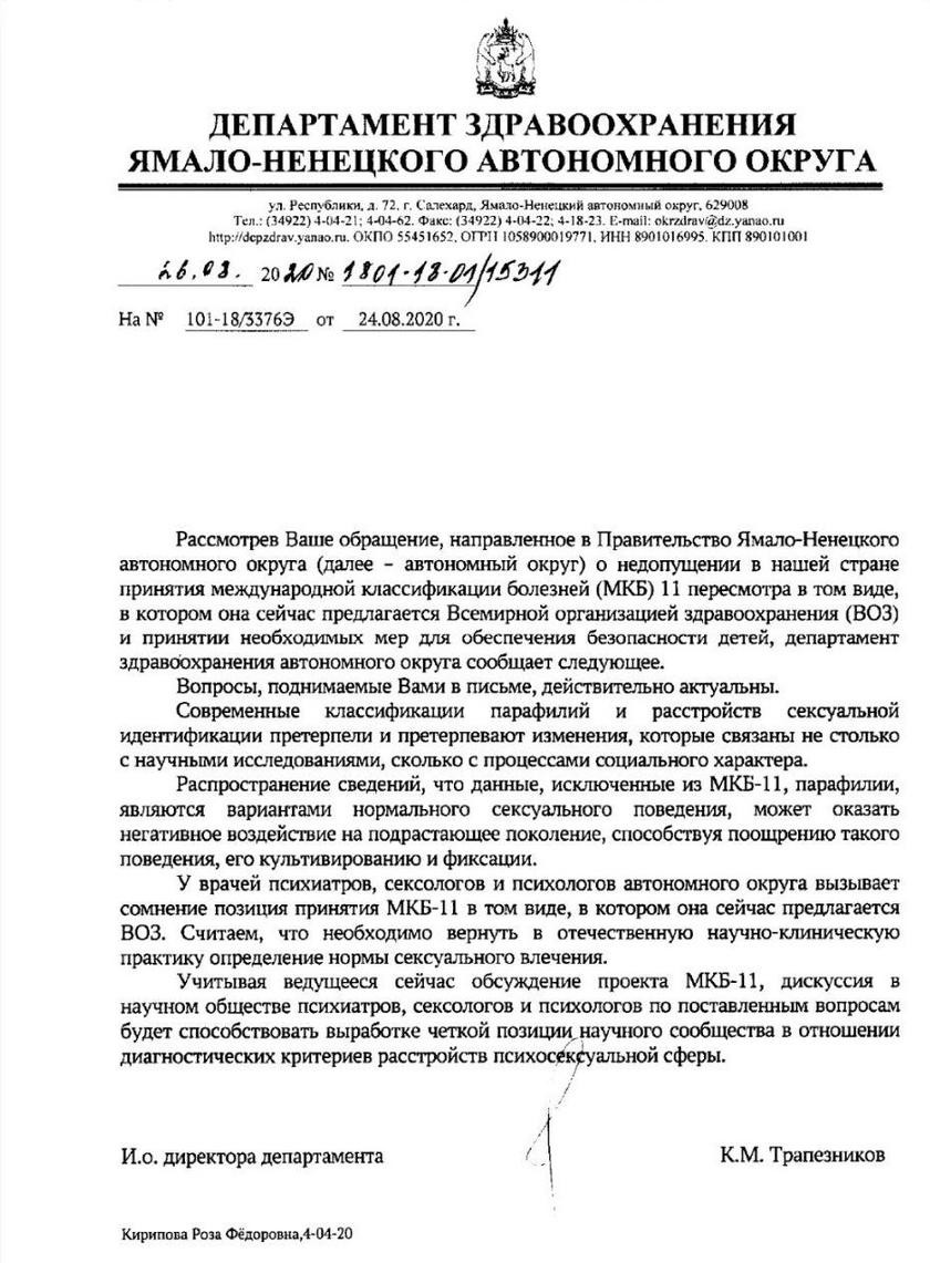 Стало это возможно после того, как 25 мая 2019 г. государства-члены ВОЗ, в том числе и представители России, согласились принять одиннадцатый пересмотр Международной классификации болезней (МКБ-11), который должен вступить в действие 1 января 2022 г. Принятие рекомендуемых ВОЗ представлений о «психической норме» и «нормах сексуального поведения», сформулированных в МКБ-11, нормализует гомосексуализм и транссексуализм как варианты здорового поведения человека. Помимо этого, прочие парафилии перестанут быть безусловными расстройствами полового влечения.