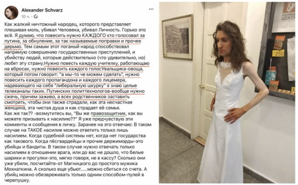 При этом гражданин ненавидит "ботоксную вертикаль власти", сравнивает полицейских с фашистами.
