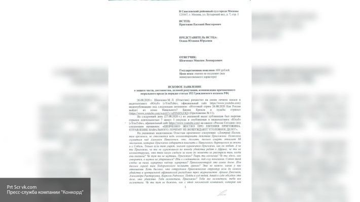Конец октября ознаменовался направлением нового иска в суд со стороны бизнесмена Евгения Пригожина против либерального журналиста Максима Шевченко. Как указано в документе, составленном юридической службой компании «Конкорд», принадлежащей петербургскому предпринимателю, на своем канале YouTube Шевченко позволил себе опубликовать недостоверную информацию и попросту оскорбительные выражения. Теперь Евгений Викторович требует от него выплаты 5-миллионной компенсации.
