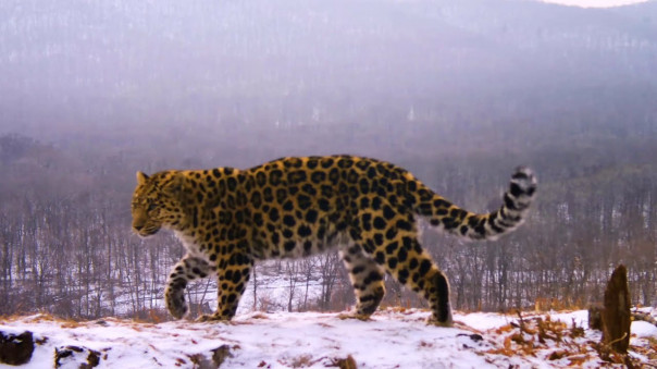 Фотоловушка нацпарка «Земля леопарда» запечатлела трогательный эпизод общения двух дальневосточных леопардов. Молодой самец принимает «снежную ванну», оставляя запаховую метку для молодой самки, живущей по соседству. Видео демонстрирует особенности внутривидовой коммуникации дальневосточных леопардов и поможет учёным в изучении краснокнижного подвида.