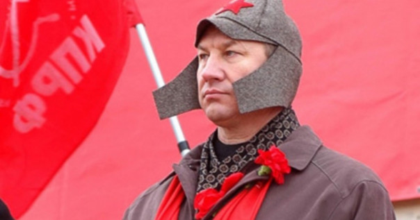 Без чуба из-под будёновки, но вполне аутентично. Вот фрагмент его интервью с сайта КПРФ: