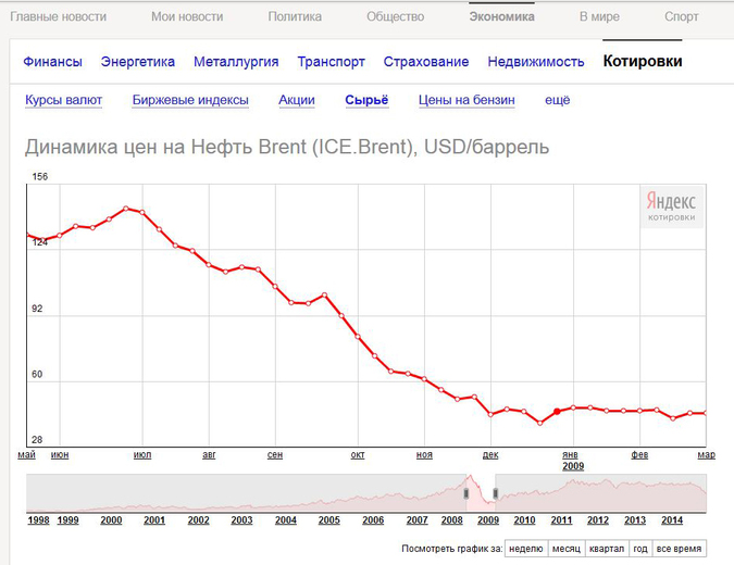 На самом деле нефть вернулась на отметку в $70 за баррель уже в июне 2009 года, а к концу года баррель марки Brent продавали и вовсе по $80. А потом Россия заново отстроила Сочи, провела и выиграла Олимпиаду, модернизировала армию, а в городах граждане наглухо встали в пробках на иномарках российской сборки по пути в гипермакеты, потому что от суши и пиццерий уже тошнит.