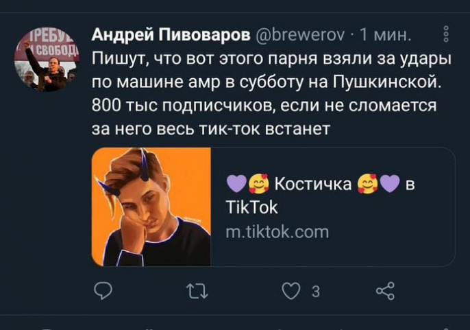 "Сегодня ты звезда Тик-тока и живёшь с друзьями в крутом тикторском доме, а завтра тук-тук и люди в чёрном помещают твоё нежное тело в казенный дом. У тиктокера Киевского были крутые тачки, бабки, 800 тысяч подписчиков, не было у Кости только судимости", - констатировал ТГ-канал "Кремлёвская прачка".