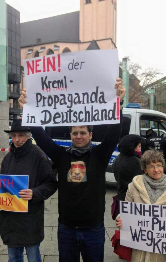 Текст письма составил уже знакомый нам персонаж - скрипач Миша Нодельман, который родился в Питере, давно эмигрировал в ФРГ, имеет германское гражданство, живёт в г. Бохум и работает концертмейстером Нового филармонического оркестра Вестфалии. "Прославился" тем, что 16.03.2014 после концерта в Кёльнской филармонии поднял жовто-блакитный флаг. На данный момент входит в руководство Форума русскоязычных европейцев в Германии, возглавляемого русофобом Игорем Эйдманом, двоюродным братом Бориса Немцова.