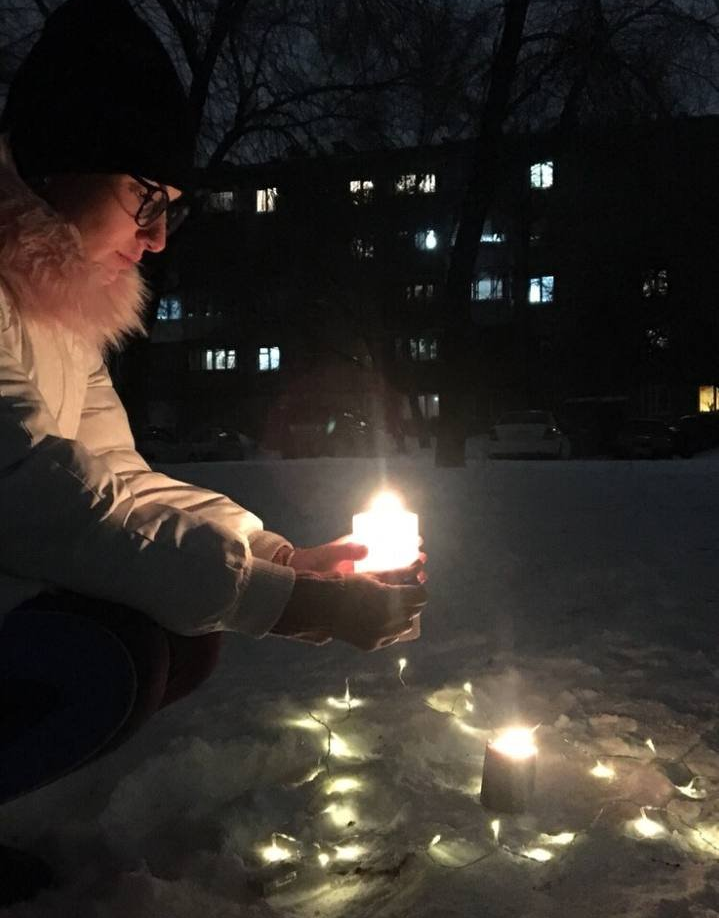 Есть много способов конвертировать малочисленность участников акции в визуальный эффект. Можно встать цепью – и жалкие 300-400 человек, которые бы поместились на школьном дворике, превращаются во внушительный километр, уходящий почти за горизонт. Можно накрыться большим флагом – и тут уж вовсе магия: сто человек могут держать флаг, который будет виден чуть ли не из стратосферы. Ну, а можно сделать так, чтобы на тёмном-тёмном фоне было видно только вас, и никого кроме вас – и кажется, что это идеально! Но…