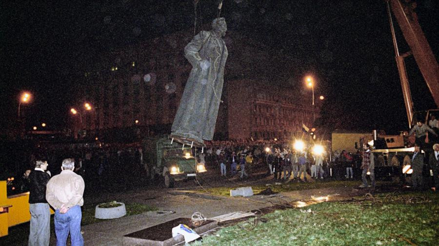 Демонтаж памятника Ф.Э. Дзержинскому на ныне Лубянской площади в ночь на 23 августа 1991 года после неудавшегося государственного переворота членами ГКЧП