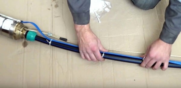 - Если насос не имеет готовый заводской кабель, то нужно подсоединить кабель. При помощи термоусадочной муфты происходит подключение кабеля к двигателю.