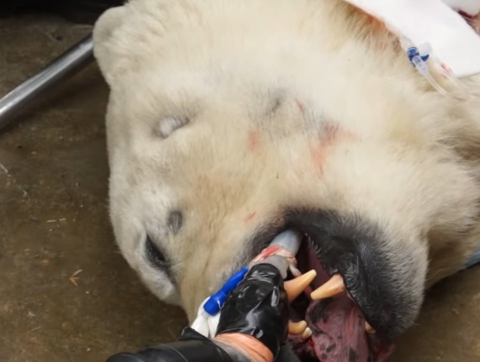Смотрители в зоопарке Копенгагена обратили внимание на то, что белый медведь ест пищу, морщась от боли. Установив, что ему сложно жевать, люди пригласили к зверю стоматолога.