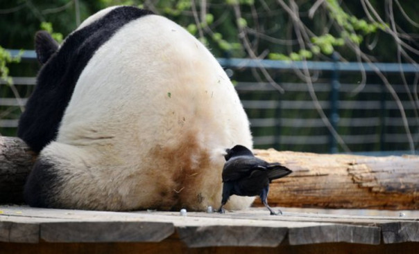 Птицы семейства врановые (лат. Corvidae) известны своим интеллектом: они используют инструменты для переноски тяжестей, умеют охотиться на крайне ядовитых существ, обладают отличной памятью и другими способностями. Недавно посетители пекинского зоопарка наблюдали, как юная ворона проявляет находчивость и практичность. Вместо того, чтобы добывать для своего гнезда ветки и сухую траву, она выщипывала мех у панды прямо с жопки.