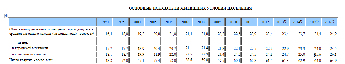 ПиСИ:Обеспеченность населения России жильём в 1990-2016 годах: