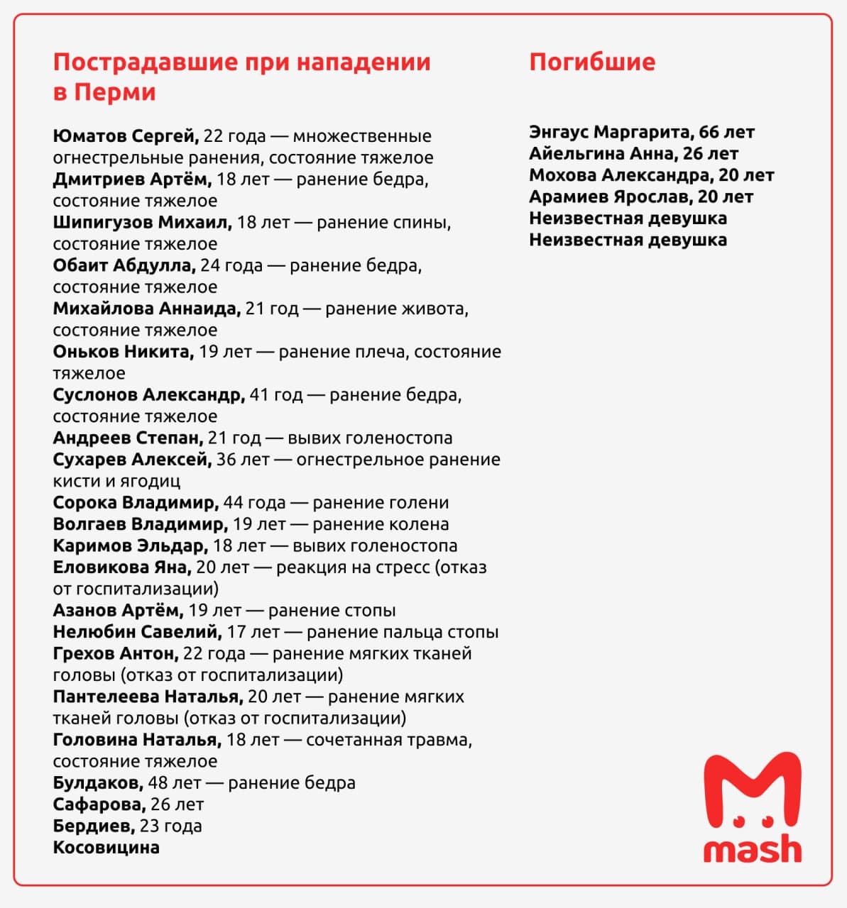 Напомним, что жертвами стрельбы в пермском университете стали восемь человек, еще 28 пострадавших получили ранения и травмы различной степени тяжести.