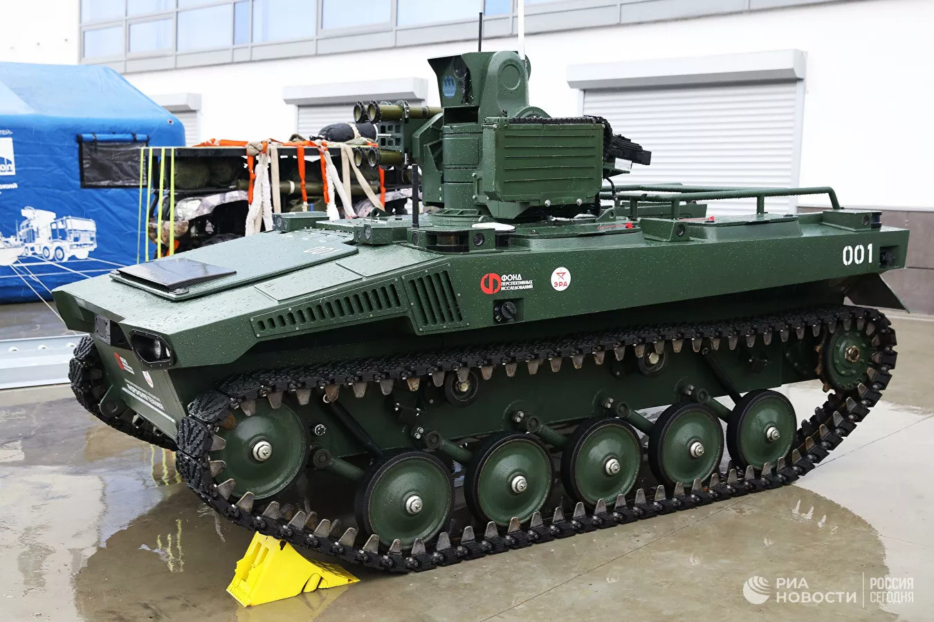Робот "Маркер" разработан компанией "Андроидная техника" совместно с Фондом перспективных исследований. Робототехнический комплекс массой около трех тонн можно оснастить различным вооружением, в том числе крупнокалибернымми пулеметами и гранатометами.
