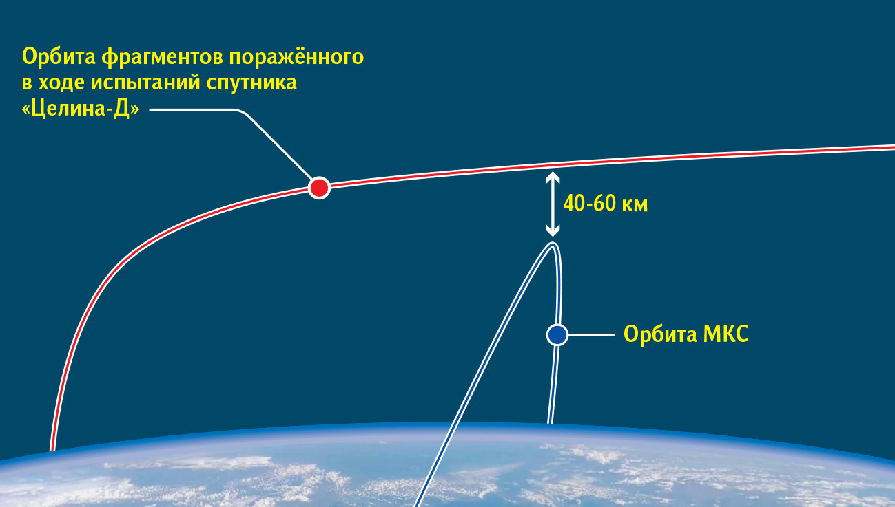 Всего несколько дней назад МКС уже пришлось уклоняться от последствий испытания противоспутниковых ракет. 10 ноября ее орбиту подняли на 1,2 км, чтобы не столкнуться с обломком китайского спутника Fengyun-1C, уничтоженного КНР в 2007 году.