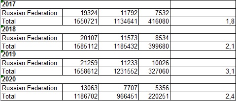 В 2020 обратный поток составил 59% (!) В год приходя Путина к власти этот обратный поток из ФРГ в РФ не составлял (см. таблицу) и 1/5