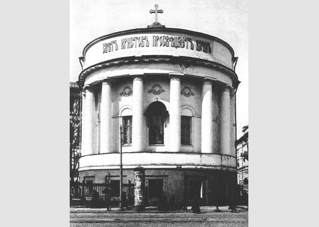 В 1833 году для Московского университета была приобретена усадьба Д. И. и А. И. Пашковых, расположенная на углу Моховой и Никитской улиц. В 1833–1836 годах архитектор Е. Д. Тюрин перестроил главный усадебный дом в Аудиторный корпус (так называемое «новое здание» Университета), левый флигель – в библиотеку, а манежную часть, где в 1805–1808 годах давала спектакли труппа сгоревшего Петровского театра – в Университетскую церковь.