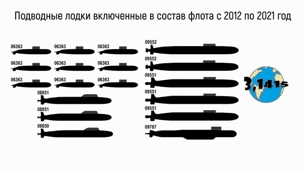 Общее водоизмещение подводных лодок вошедших в состав Военно-морского флота с 2012 года составило более 215 тысяч тонн.