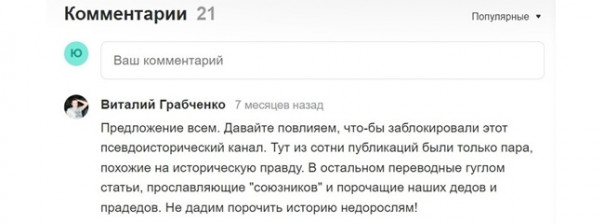 Если вы думаете, что все это псевдоисторическое фуфло очень нравится российской аудитории, которую таким способом накачивают против собственной страны и её истории, то вы опять же сильно ошибаетесь. Практически под каждым таким злопыхательским выхлопом куча возмущенных комментариев по поводу столь беззастенчивой психобработки читателей: