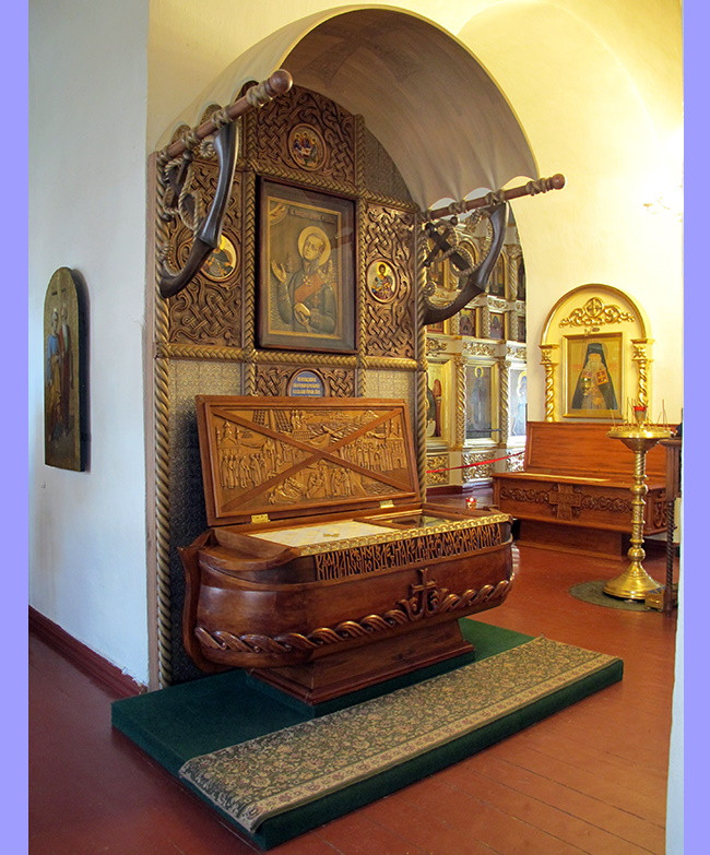 Погребён в Санаксарской обители близ могилы дяди, преподобного Феодора Санаксарского, который был прославлен в лике святых Русской Православной Церкви, как и его великий племянник, в октябре 2004 года.