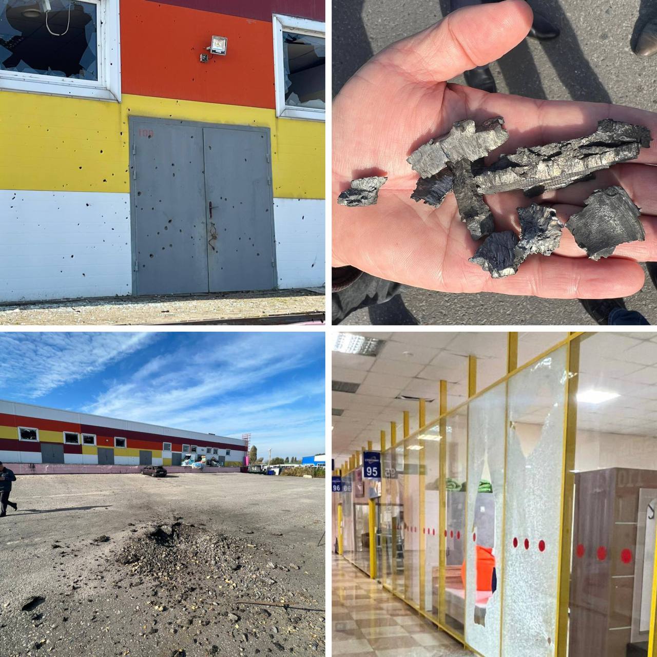 Прилеты пришлись на гражданские объекты, в том числе торговый центр и ФОК. Там повреждены окна, витрины и надувной купол. Также осколки побили две машины, которые стояли на парковке. Источник